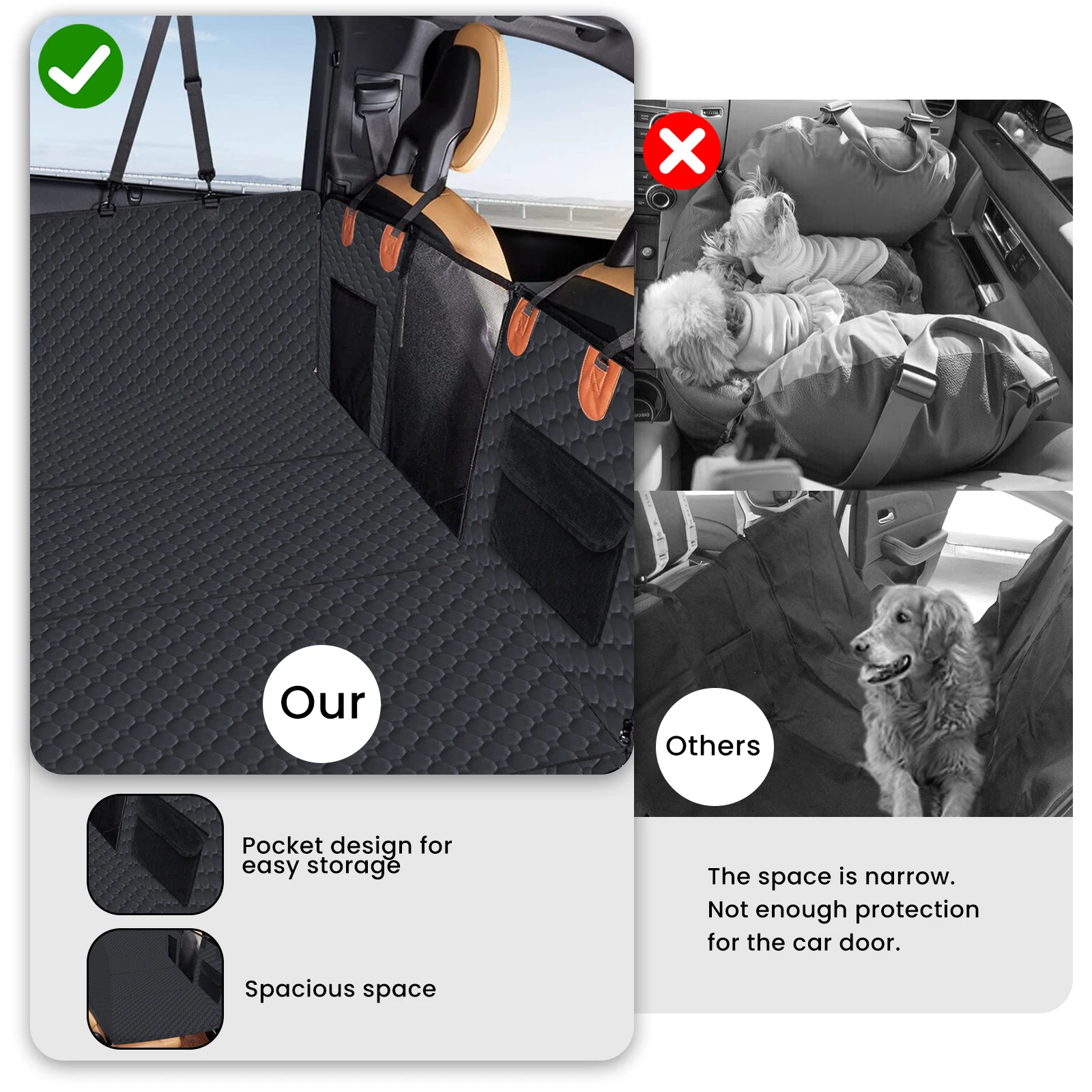 More comfortable: The extended hardboard back seat widener turns the entire space of the back seat into a more comfortable dog sleeping place in the car, while also preventing the dog from falling off the back seat during sudden braking or playing. When traveling, people can also share the sleeping place in the car with their pets.