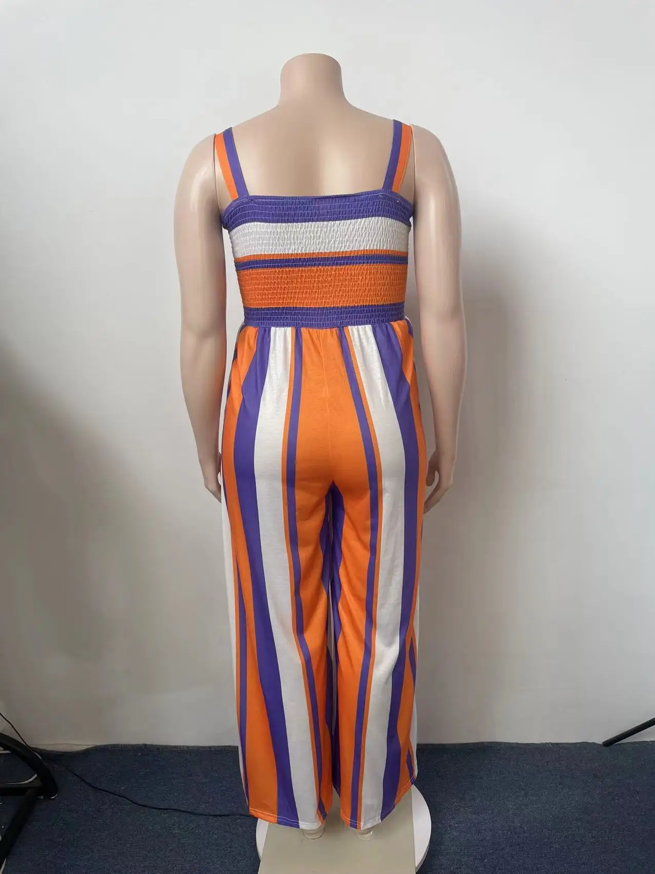 L-5XL Plus Size Jumpsuit for Women Clothing 2022 Summer Fashion Strap Multicolor Straight Wide Leg Romper Dropshipping Wholesale