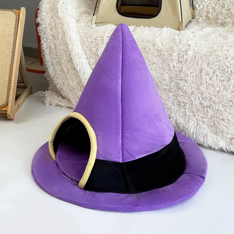1.Unique Design: Shaped like a classic witch hat, it adds a fun, whimsical touch to your home decor while providing a cozy nest for your pet. Perfect for Halloween - themed setups or year - round magical vibes.
